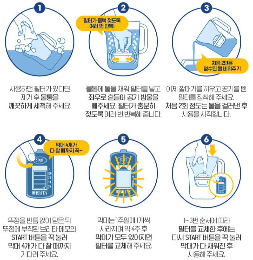 요약하자면 브리타 정수기 사용법은 다음과 같습니다.