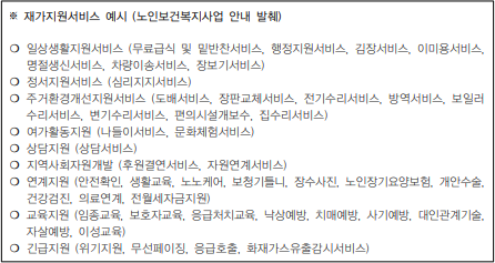 | 해당양식 | ※ 재가노인지원 사례관리 양식지 (한국재가노인복지협회의 표준매뉴얼 작업 사례관리 양식지 참고) |