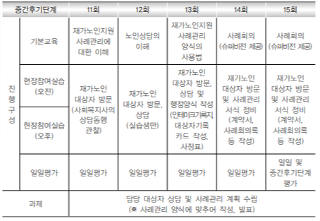 | 단계 | 중간후기단계 (사례관리의 실습) |
