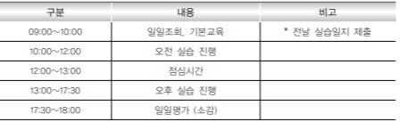 | 실습지도자의 역할 | ❐ 실습 오리엔테이션 진행 ❐ 실습계획과 일정에 맞춘 실습 진행 ❐ 일일 실습 소감 피드백 ❐ 실습생 일일평가 진행, 실습일지 점검(매일) |
