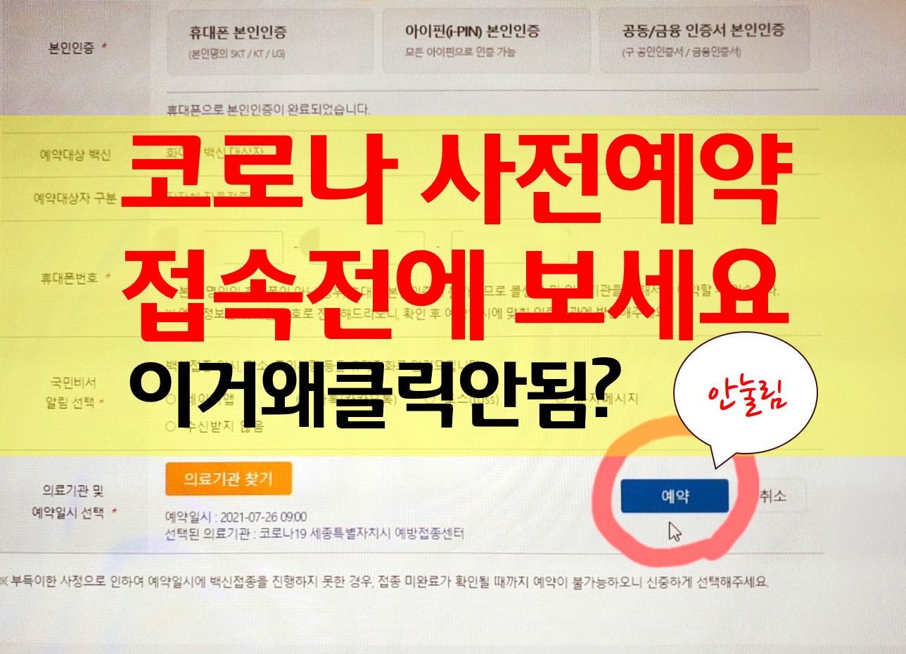 코로나 예방접종 사전예약 후기/ 클릭 안되는 문제 해결 방법!
