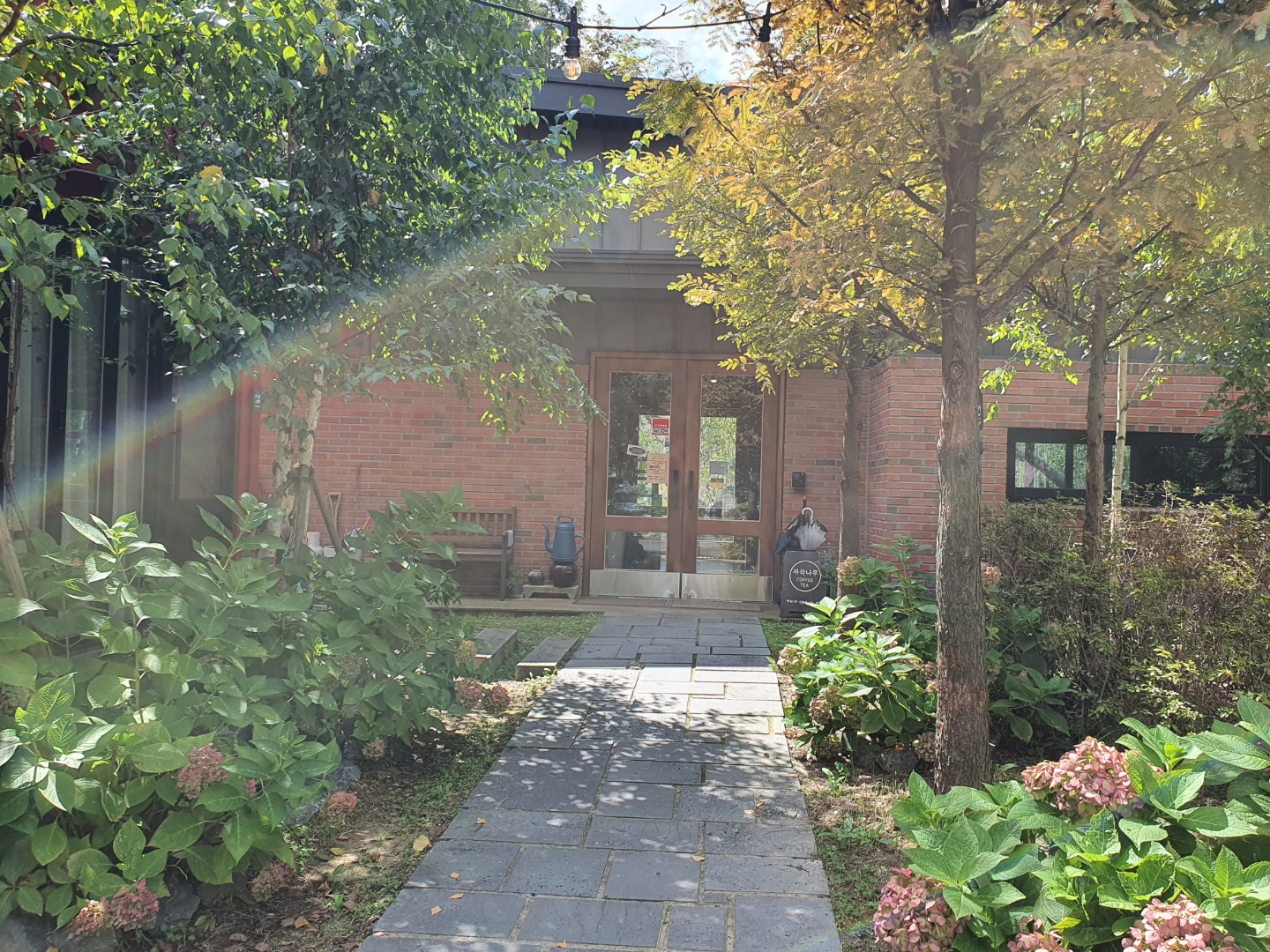 자작나무로 둘러쌓인 오솔길을 걷다보면 카페건물이 보입니다. 2층은 가정집으로 활용하고 있는 것으로 보이고, 1층은 카페로 사용중인 것 같았습니다. 정원이 무척 넓었어요.