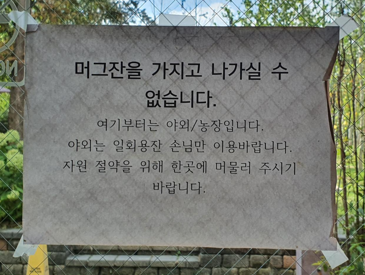 외부테이블에서 마시려면 머그잔을 이용할 수 없다고 하더라구요.