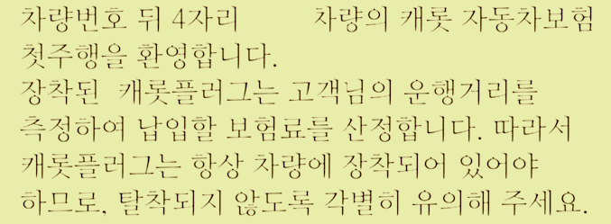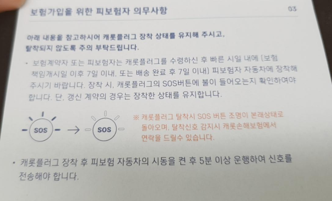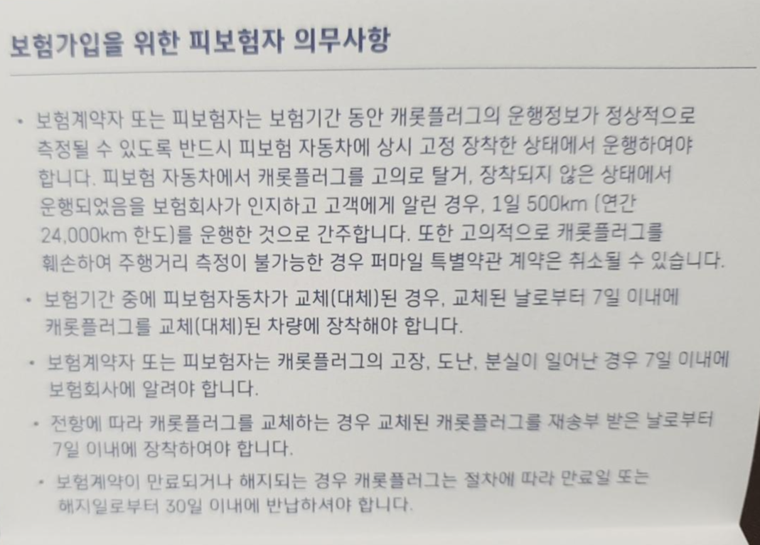 ◈ 캐롯플러그 장착 기한 : 보험시작일로부터 7일 이내