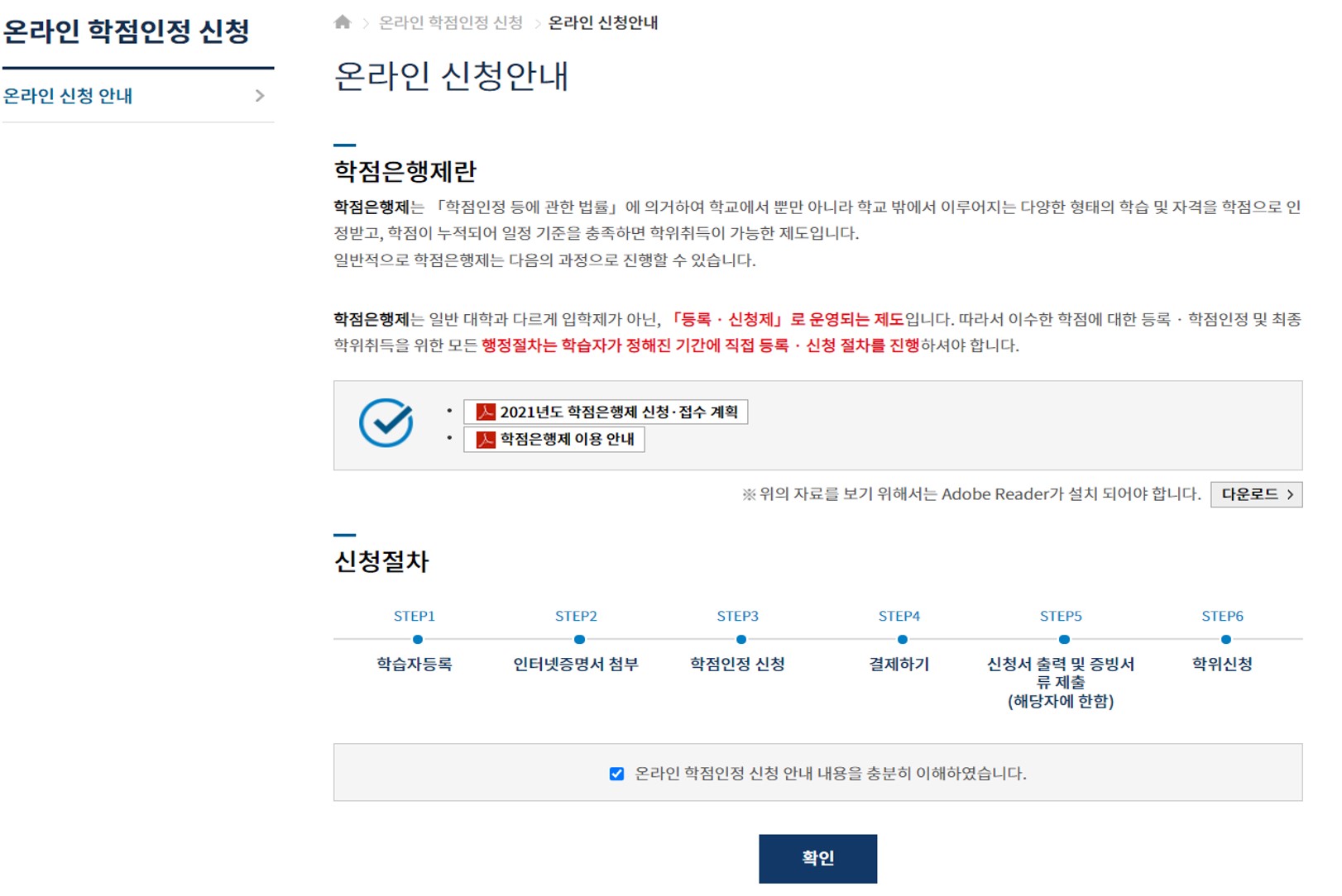 ▶ 학점인정 신청이 가능한 달: 1월, 4월, 7월, 10월
