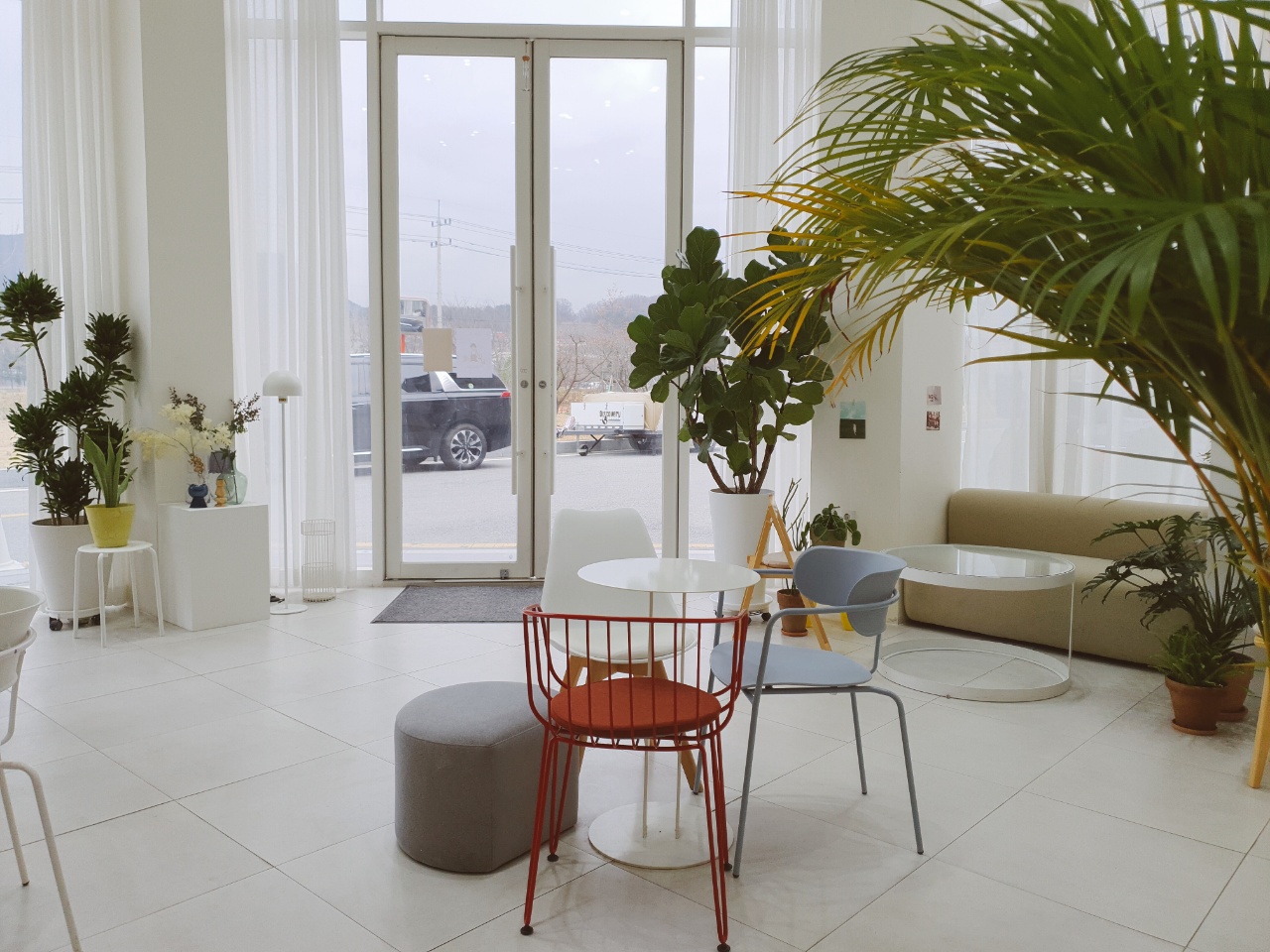 지난 주 대전 전민동에 있는 산책로를 걷다가 추위를 피해서 들어간 카페입니다. 카페 외관을 미처 찍지 못했지만 외관부터 너무 예뻤어요! 두 팀 정도가 이미 가게에 있었는데요. 그 중 한 팀은 강아지 동반해서 오셨더라고요. 몽자를 닮은 강아지가 매우매우 귀여웠습니다! 갑천 옆에 위치한 산책로가 있어서 강아지 산책 중 쉬러 들어오신 분들 같았어요! 덕분에 저희도 강아지 구경하고 너무 즐거웠어요! 카페 인테리어도 깔끔한 화이트 톤으로 너무 예쁘더라구요! 안그래도 물어보니 종종 사진촬영도 한다고 합니다!