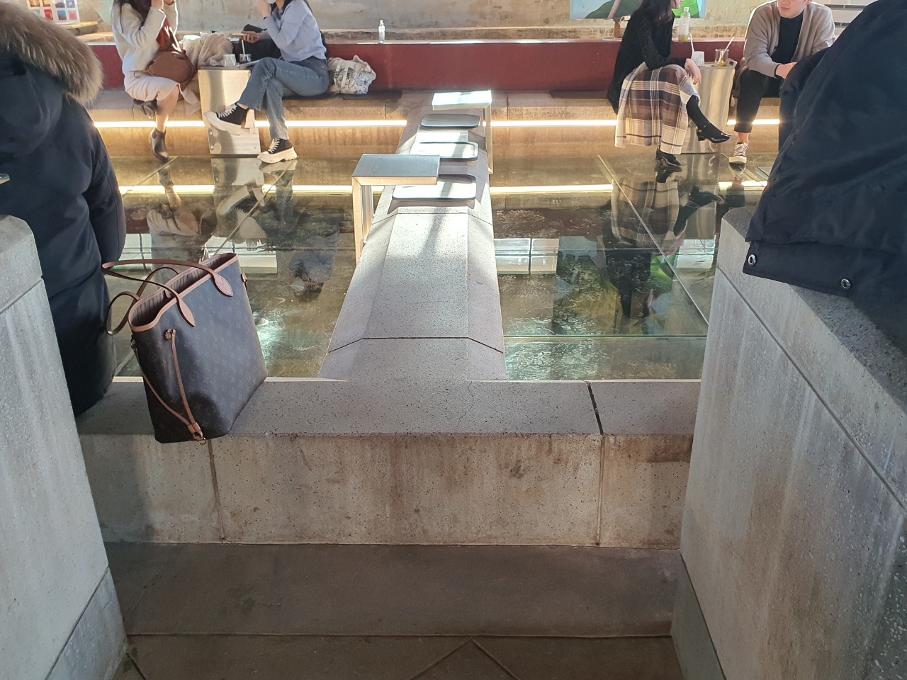 숨겨진 공간에 일부 미술전시도 하고 있었어요. 인터렉티브 아트라고 하나요? 조치원 정수장 건물 그 자체와 그 안에 숨겨진 예술작품을 찾아내고 소통하는 재미가 있었습니다. 상시 전시된 것인지 아님 주기적으로 바뀌는 것인지는 잘 모르겠어요. 2층(1.5층?)에는 정수장이라는 취지를 살린 바테이블과 좌석이 있었고요. 아싸인 저는 저 커플들 사이를 비집고 들어가 한자리 차지하기에는 너무나 부끄러웠고요. INTP인 저는 사진촬영이라는 목표만 달성한 후 바로 나와서 근처 별관에서 쭈구리처럼 커피를 마셨습니다.