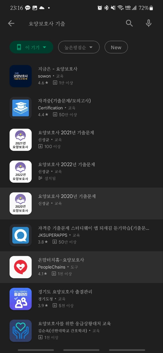 위의 퀴즈톡은 이제 못하니까 다른 대체할 수 있는 퀴즈어플이 있나 샅샅이 찾아봤어요. 찾아보니 있더라구요. 구글플레이에서 "요양보호사 기출"로 검색하면 요양보호사 기출문제 어플이 있답니다!