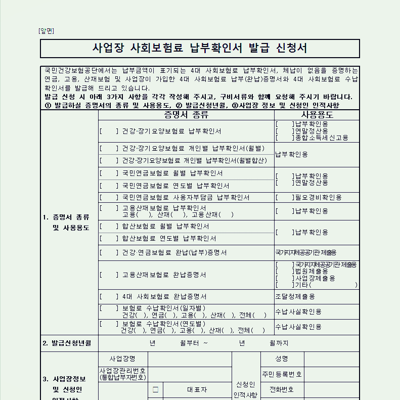 사업장 사회보험료 확인서 발급 신청서/4대보험 증명서 이거 하나로 끝!