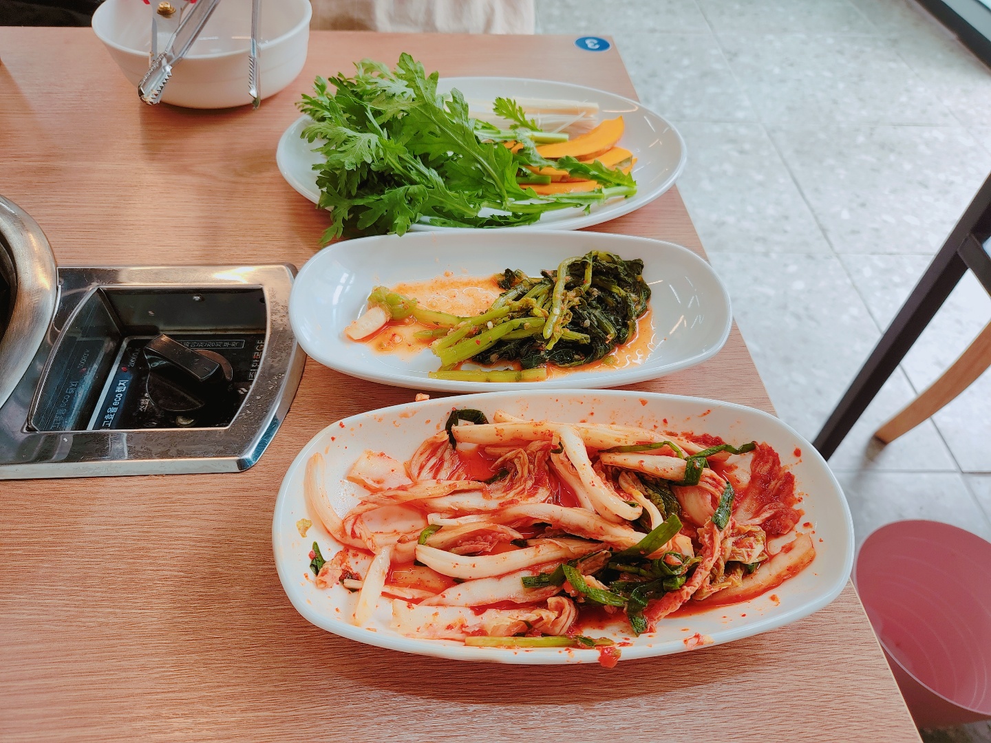 새로 생긴 식당이라 그런지 테이블도 깔끔했어요. 다만 가게가 입점하고 있는 상가가 신축아파트 상가이다보니, 배관에서 공사 잔여물같은 게 나오지 않을까 조금 찝찝하긴 했는데요. 해초필터를 사용한 물로 요리하고 있다고 설명이 되어 있어서 좀 안심이 되긴 했어요. 반찬도 깔끔했고 겉절이도 맛있었어요. 칼국수 먹을 때 김치는 잘게 찢어서 먹는 게 국룰인 거 아시죠?