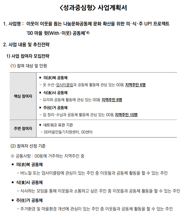 공동모금회 프로포절 성과중심형 사업계획서 예시