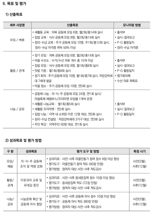 이 공동모금회 성과중심형 사업계획서 작성 예시는 2022년 공동모금회에서 발간한 배분사업 안내에 나와 있는 자료입니다. 이 예시는 2020년 신청사업 달서구학산종합사회복지관 사업계획서 일부를 발췌 요약한 것으로서, 전체 사업계획서의 내용은 http://proposal.chest.or.kr 에서 확인할 수 있습니다.