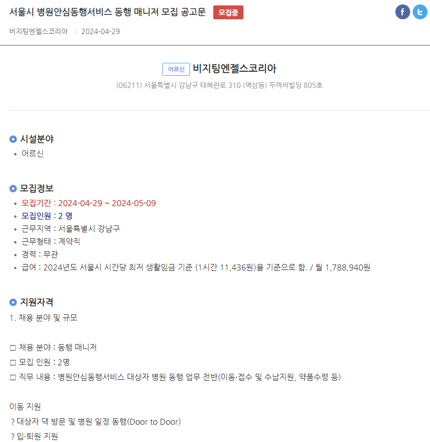 병원동행매니저 급여 및 구직 방법