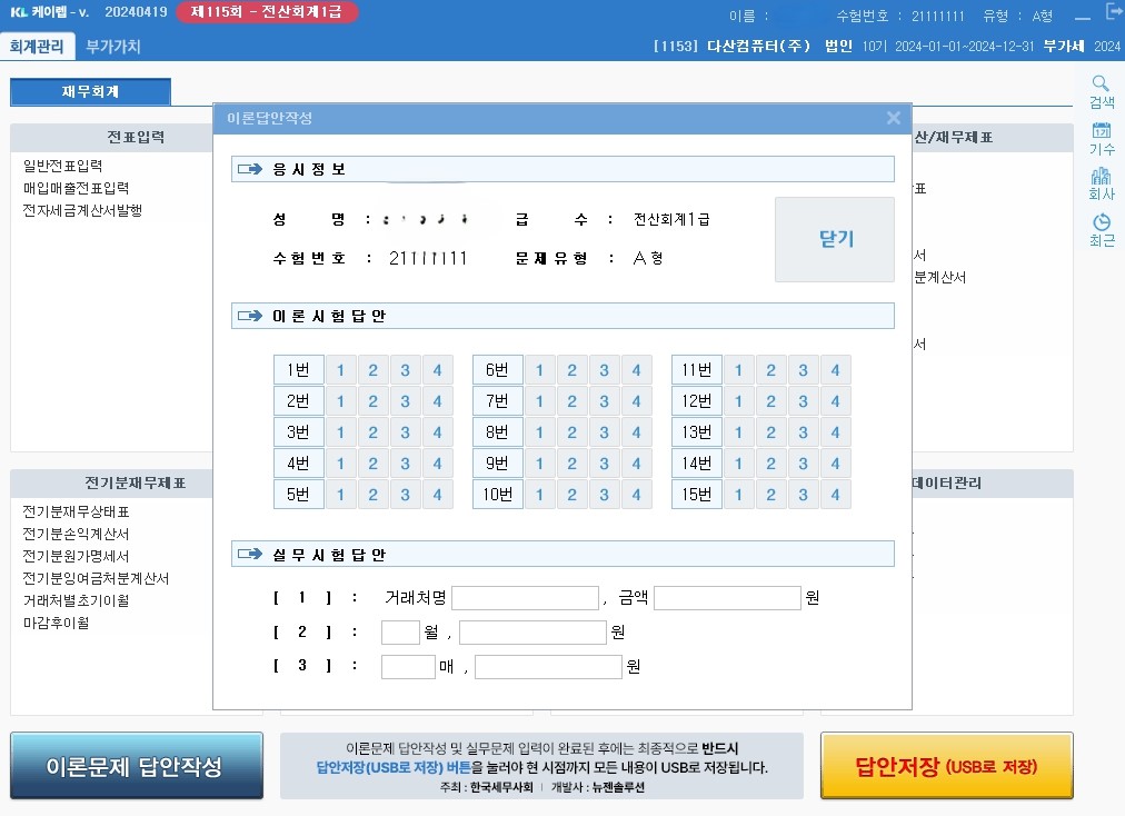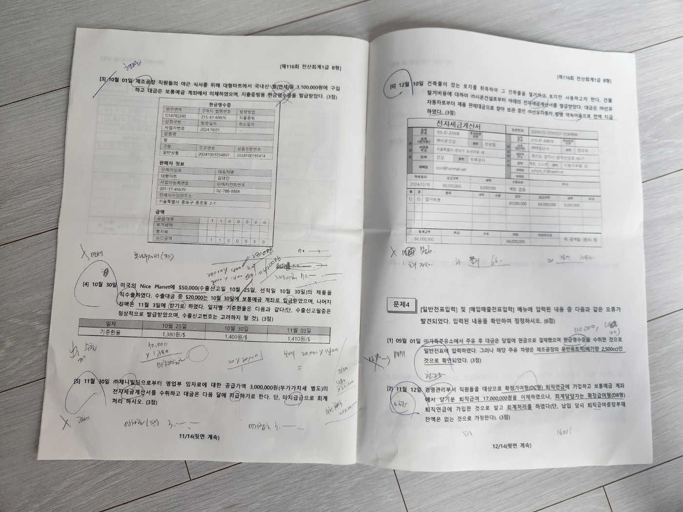 안녕하세요. 2024년 116회 전산회계 1급 시험을 봤는데요.