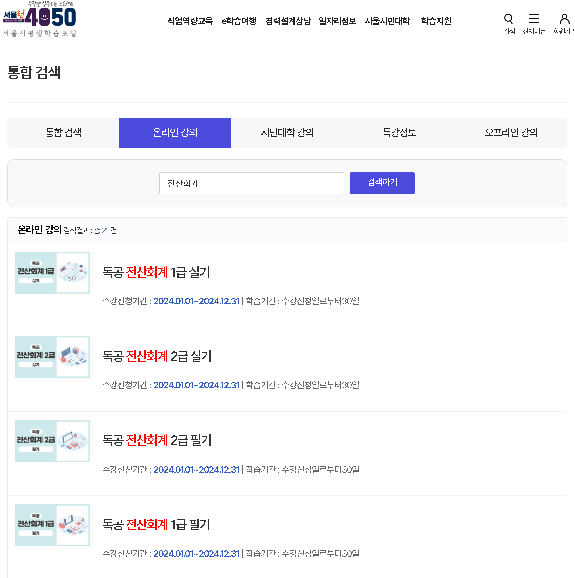 - 서울시평생교육포털 사이트를 통해 무료 강의가 제공됨