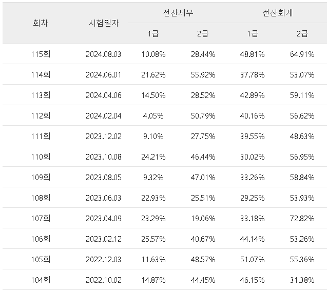ㅁ 전산회계 시험 합격률
