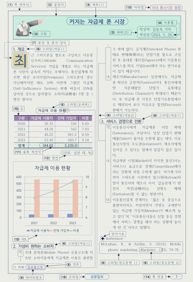 ③ 3면 보면서 모든 텍스트(머릿말 포함)만 위에서부터 차례대로 입력(그림, 그래프, 서식 제외)