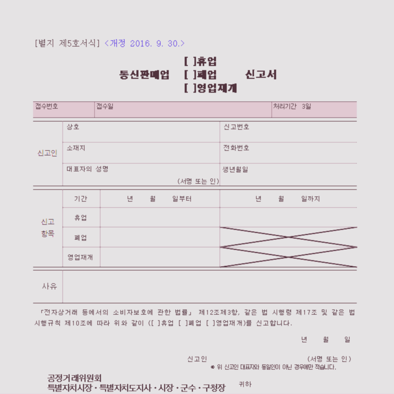 통신판매업 폐업 신고서 양식