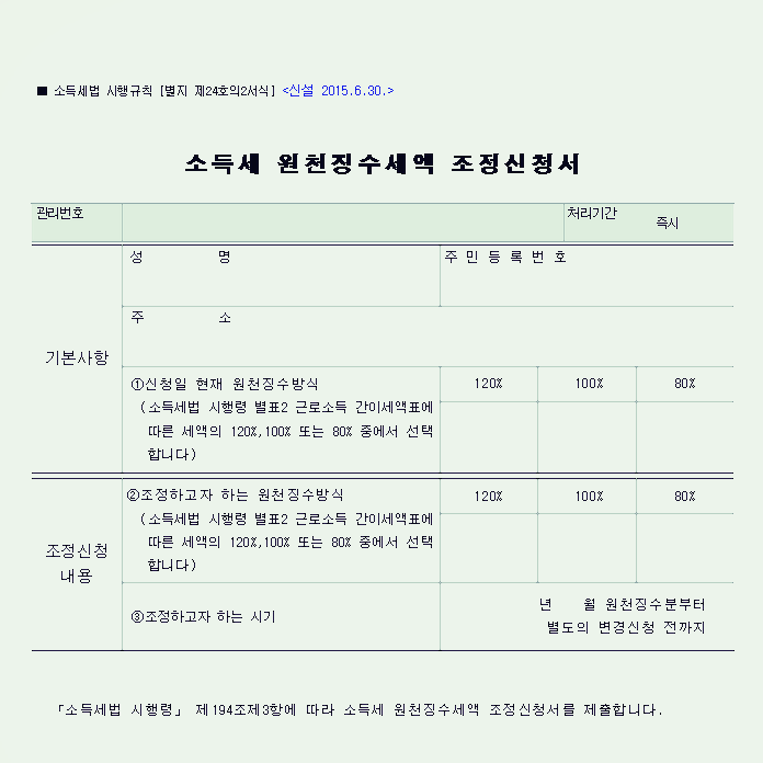 소득세 원천징수세액 조정신청서 양식